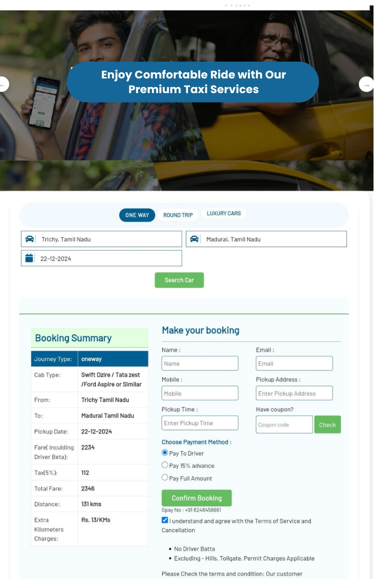 Streamline your ride requests with our user-friendly Booking Enquiry System – making taxi bookings quick, easy, and hassle-free!.