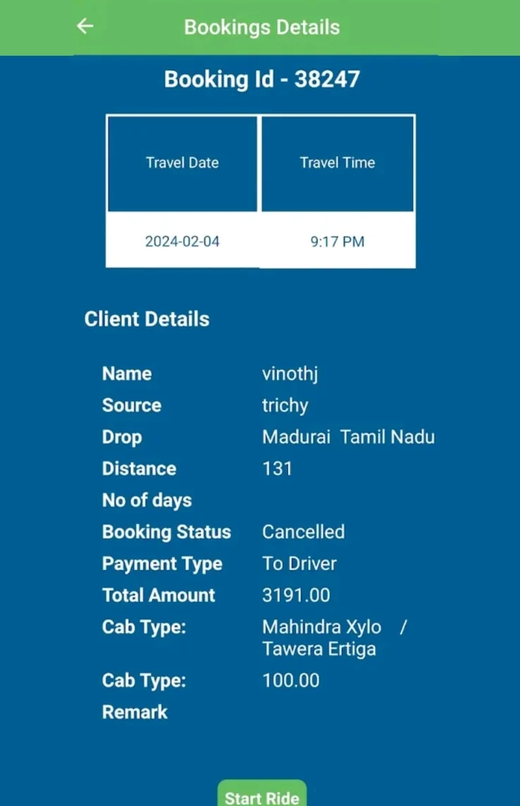 - Assignment of vehicles to drivers based on availability.
